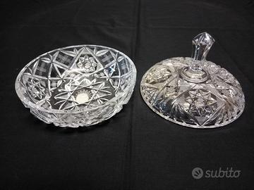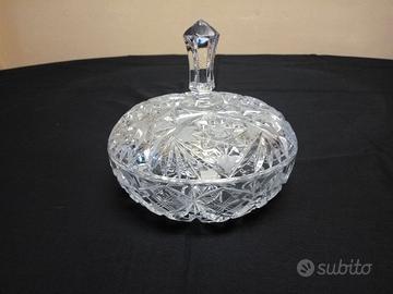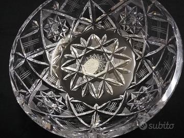 Vecchia ciotola in perfetto stato, made in Czechoslovakia. In cristallo. Leggeri graffi sul fondo esterno delle ciotola, la parte a contatto col tavolo, altrimenti in perfetto stato. Tagliato lavorato a mano. Vintage, secolo XX, forse anni 70 - 80. Centrotavola, portaoggetti, porta dolci tradizionale Boemia. Diametro circa 18 cm, altezza totale circa 16 cm. Peso circa 1,65 kg. Over 24% PbO.