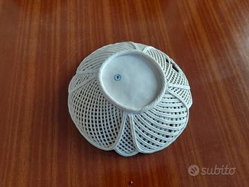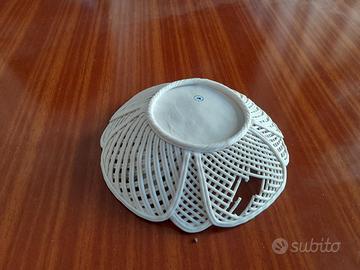Elegante ciotola decorativa in ceramica bianca, perfetta per aggiungere un tocco di raffinatezza a qualsiasi ambiente. Il design traforato e le delicate decorazioni floreali la rendono un pezzo unico.