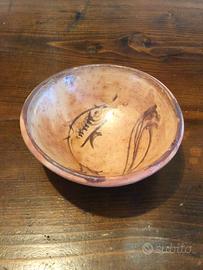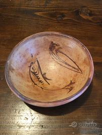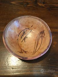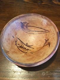 Ciotola del Peru Originale Anni 40. Perfettamente conservata, in condizioni impeccabili. Acquistata sull'isola di Amantani. Simbolo di protezione e di buona sorte. Dimensioni: diametro 16 cm. In terracotta, realizzata e dipinta a mano, reca il decoro semplice di un pesce e un ramo di grano. Con il tipico decoro peruviano dell'epoca un pezzo unico e introvabile, adatto ad ogni ambiente in cui lo si collochi, per la sua iconicità. Splendida da utilizzare, da esporre ma, anche, da regalare. Un pezzo unico. Introvabile. Bellissima.
