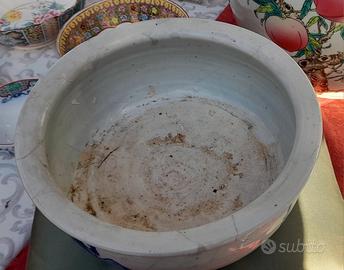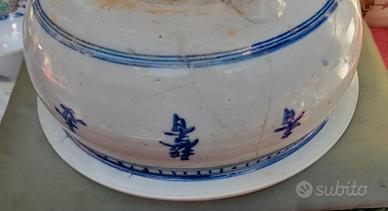 Ciotola In Porcellana Cinese Bianca E Blu Dipinta a mano del' 700. Presenta venature dovute dal tempo ma la Ciotola è integra solida. Diametro 26.5 cm Altezza 11.5 cm