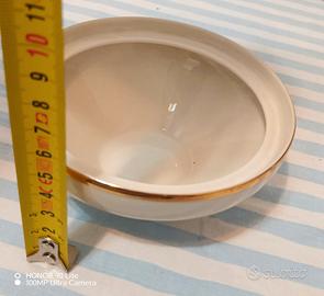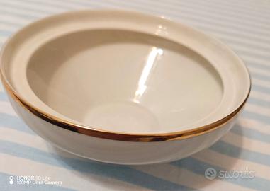 Elegante ciotola in porcellana bianca con raffinato bordo dorato, prodotta dalla storica manifattura Zeh Scherzer – Bavaria (Germania).