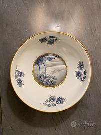 Ciotola in porcella Limoges dipinta a mano con paesaggi blu e oro