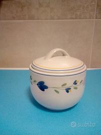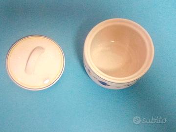 Recipiente contenitore ciotola barattolo vasetto Ciotola porcellana Tognana con coperchio. Dipinta con fiori stilizzati diametro 10 cm altezza 9 cm Nuova