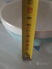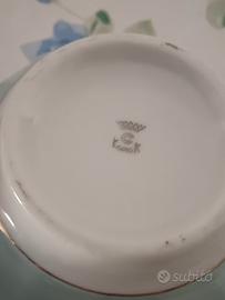 Vendo splendida ciotola in pregiata porcellana firmata KOROK (marchio originale con corona visibile sul fondo). Questo pezzo si distingue per il suo stile classico e intramontabile, perfetto sia per l'uso quotidiano che per collezionismo. La ciotola presenta un design esterno sfaccettato (a coste) in una bellissima tonalità azzurro pastello, con interno e bordo superiore in bianco candido. Caratteristiche principali: Marca: Korok (Porcellana autentica). Stile: Vintage / Retro / Shabby Chic. Dimensioni: Diametro di circa 14 cm e altezza di circa 7,5 cm. Stato di conservazione: L'oggetto è in condizioni vintage molto buone. La porcellana mantiene la sua lucentezza originale. Segnalo solo lievi e normali segni del tempo sul bordo (come visibile in foto) che ne attestano l'originalità e non ne compromettono l'estetica. Ideale per cereali, zuppe, o come elemento decorativo per una cucina dal sapore provenzale.