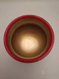 Ciotolina in legno ---> KHOKHLOMA laccata, dipinta a mano, color oro, nero e rosso; / Epoca anni 70, prodotta in URSS; / Dimensioni: h. 7 x diam-base 5 x diam-bocca 6,5 cm., peso 40 gr. / Condizioni come da foto; unico proprietario, a disposizione per altre informazioni e/o foto.