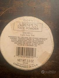 cipria Coty in scatola originale di cartone, diametro cm. 8,5, da collezione, con imperfezioni ma nel complesso in condizioni accettabili, come da foto: contenuto non più sigillato, segni di nastro adesivo, bordi della scatola usurati