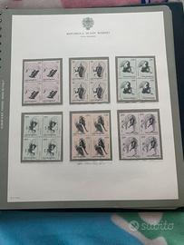 Album con 38 pagine complete di francobolli di San Marino in quartine nuovi. Anni dal 1977 al 1982