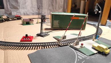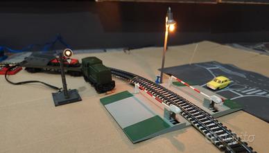 Circuito completo di binari con passaggio a livello , locomotiva inerente con Carro , lungo la tratta 2 lampioni , semaforo con controller , due casette per paesaggio con tappeto strada piu controller per funzionamento a batteria. Tutto funzionante , da allestire e terminare con comandi personalizzati . Il tutto comprende : 1 Locomotiva e carro con auto Curve medie 1 Semaforo Lima con comando 2 Lampioni . 1 Controller lima a batteria 1 Tappeto Strada 2 casette Si dispone di video e altre foto del funzionamento, un bel kit per iniziare..