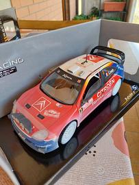 Modellino Solido in scala 1:18 della Citroen Xsara WRC Montecarlo 2004 DIRT di Sebastian Loeb.