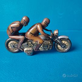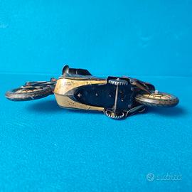 Bella motocicletta di latta realizzata dalla tedesca CKO (Georg Kellermann & Co.) nella prima metà degli anni '50. Testata e funzionante come mostrato nel video, si presenta in gradevoli condizioni di conservazione ed è lunga 15 cm.