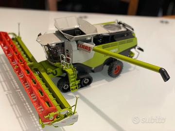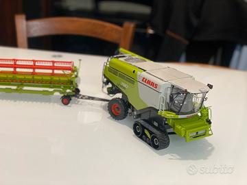 Modellino in scala 1-32 della trebbia Claas Lexion completa di scatola rimorchio porta barra
