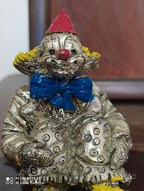clawn in argento 925 dipinto (giallo, azzurro,ross)13,5cm di alt.12,5 x9 la base in legno.