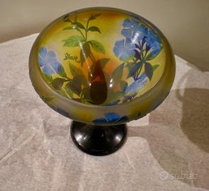 Coppa firmata Gallé in pasta di vetro trattata agli ossidi, decorata a cammeo e rifinita alla piccola ruota , di gusto Art Nouveau.