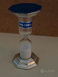 clessidra in vetro e argento argento 800, composto da due bulbi di vetro collegati che permettono lo scorrimento della sabbia