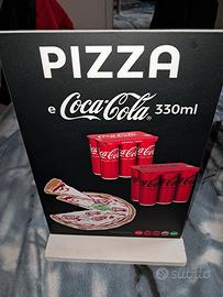 coca cola lotto nr 2 locandina pubblicitaria pizza pollo con piedino tutto in materiale plastificato come da foto