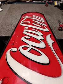 Coca cola "insegna" probabilmente era il frontale di un frigo a cui è stato applicato un pannello di legno posteriore per poterlo appendere.