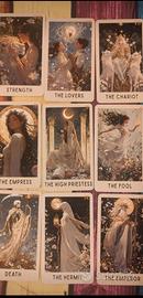 Cofanetto 78 carte Ethereal Bloom Deluxe da Collezione grafica stupenda cartoncino alta qualità misure cofanetto 13×8.3 cm ottime Cards 12x7 con libretto cartaceo d'istruzioni.l Tarocchi Ethereal Bloom sono luminosi portano nei ritmi sacri della tua anima.Miscelazione di misticismo solare celeste bellezza e simbolismo intuitivo, carta cache ti invita a fiorire dall'interno e riconnettiti con la tua luce interiore. Con delicate opere d'arte radicate nel divino energia femminile e un sussurro di chiaro di luna magico questo cofanetto da 78 carte offre una guida di chiarezza e grazia spirituale.Ethereal Bloom Deluxe 78-Card Box Set A stunning graphic collection on high-quality cardstock. Box size: 13 x 8.3 cm. Excellent 12 x 7 cm cards with a paper instruction booklet. The Ethereal Bloom Tarot cards are luminous and lead you into the sacred rhythms of your soul. Blending celestial solar mysticism, beauty, and intuitive symbolism, this card invites you to blossom from within and reconnect with your inner light. With delicate artwork rooted in divine feminine energy and a whisper of magical moonlight, this 78-card box set offers guidance of clarity and spiritual grace.