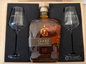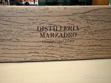 Vendo cofanetto in legno Distilleria Marzadro, contenente una grappa Giare Amarone da 70 cl e due bicchieri.