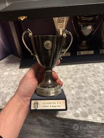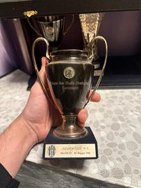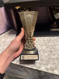 Vendo cofanetto in ARGENTO contente le 3 coppe europee vinte dalla juventus da prima squadra al mondo in assoluto ad esserci riuscita, premio ricevuto dalla societa juventus nel 1988 chiamato (targa UEFA) in più questo cofanetto ha anche la coppa intercontinentale vinta in concomitanza della stagione in cui venne vinta la champions e la coppa delle coppe.