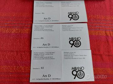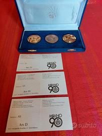 Cofanetto medaglie celebrative Milano 1990 Pomodoro Fabbri Cascella coniate dal comune di Milano in occasione del campionato mondiale di calcio 1990