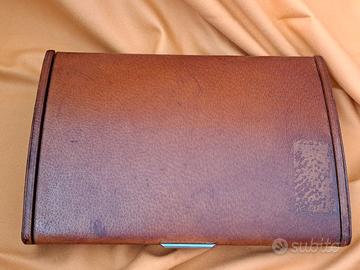 Cofanetto per gioco da carte vintage, usato, rivestito in pelle.