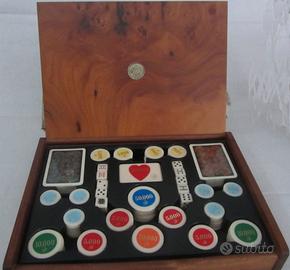 Astuccio radica "PECHINO" con CARTE, DADI, FICHES articolo 5028 con coperchio a ribaltina.