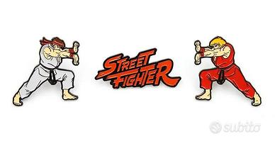 PRODOTTO DALLA CAPCOM ARRIVA QUESTO FANTASTICO BOX SET DI 3 SPILLE IN METALLO SMALTATO DI RYU E KEN DI STREET FIGHTER, IL VIDEOGAME PIU' FAMOSO AL MONDO!