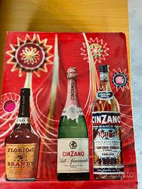Vendo cofanetto con bottiglie della Cinzano con Asti spumante , Cinzano bianco e brandy Florio con ancora tagliando di imballo del 1962.