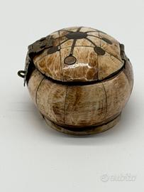 🔎 Un po’ di storia: cofanetti di questo tipo erano spesso usati come porta-gioielli o piccoli contenitori da toeletta/viaggio, pensati per custodire oggetti personali (anelli, monete, piccoli ricordi). La combinazione osso + metallo con interno in velluto è tipica di oggetti artigianali decorativi oggi ricercati anche come pezzi da collezione.