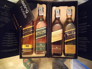 Cofanetto 4 bottiglie da 20 cl. l' una di whisky Johnny Walker stagionatura varie annate. Risale a circa 25 anni fa ed oggi è introvabile con custodia.