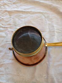 colino in rame da collezione con manico altezza cm 9 diametro sopra 15 cm e sotto 9.5 cm possibilità di appenderlo al muro
