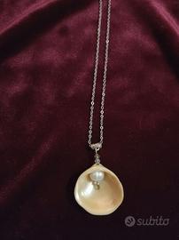 Collana Argento 925 Vintage anni 80 Ciondolo perla