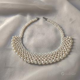 Collana Choker Bavaglio Perle Maiorca Alta Moda Vintage Regale Sposa