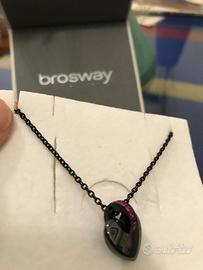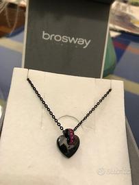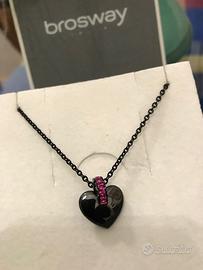 Collana BROSWAY collezione TRESOR in acciaio inossidabile 316/304L PVD nero, pendente a cuore scorrevole in ceramica nera con finitura lucida, arricchito da un anello centrale di cristalli di colore fuxia.