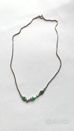 collana ciondoli foglia smaltati verde vintage argento 925 Peso 8g Lunghezza 44 cm