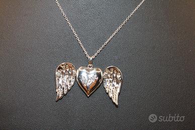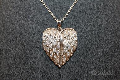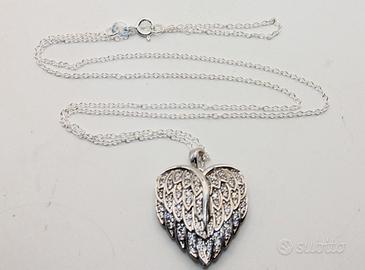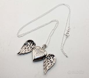 Eleganza celestiale con questa magnifica collana dal design unico e ricco di significato. Il ciondolo raffigura due splendide ali d'angelo, finemente lavorate, che si aprono per rivelare un cuore amoroso al loro interno, custode di un messaggio prezioso. Sulla superficie del cuore è delicatamente incisa la parola "Love", un sigillo d'affetto eterno. Questo gioiello simbolico, che parla di protezione e amore, presenta un ciondolo dalle dimensioni armoniose di 26 x 21 mm, perfettamente bilanciato su una delicata catenella d'argento lunga 40 cm che si posa con grazia sul décolleté. È un accessorio affascinante e un regalo indimenticabile, perfetto per chi desidera portare sempre con sé un simbolo d'amore segreto e protetto.