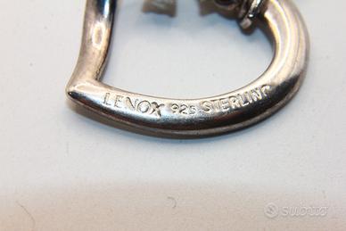 Collana con ciondolo a cuore in argento, misura 24 x 23 mm, dal design unico con una piccola pietra incastonata nella parte superiore. Tre pietre multicolore, tra cui una perla, una pietra azzurra e una rossa, pendono liberamente dalla parte inferiore del cuore. Il ciondolo è sospeso a una catena a maglia fine.