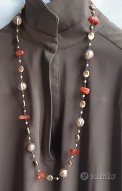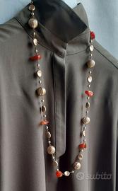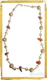 💎 Collana lunga con pietre corniola con bigiotteria in metallo color oro bronzato .