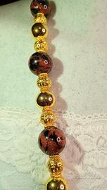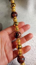 grande e bellissima collana usata una sola volta con pietre di sole, perle in resina dorata e perle in filigrana dorata. connettori in acciaio dorato.