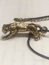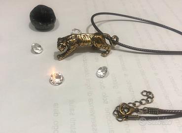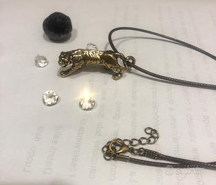 Collana con ciondolo una tigre in ottone massiccio!! Ho aggiunto in 🎁 omaggio 2 pietre preziose a forma di brillante!