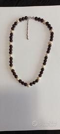 Vendo girocollo in vero granato rosso scuro con vere perle barocche.