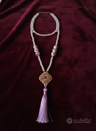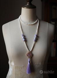 Collana Lunga stile vintage anni 20 Perle Maiorca Vintage Artigianale Nappa Ceramica