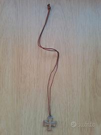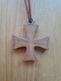 Collana con croce in legno di ulivo ciondolo pendente unisex uomo donna comunione cresima pace spirito santo