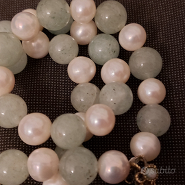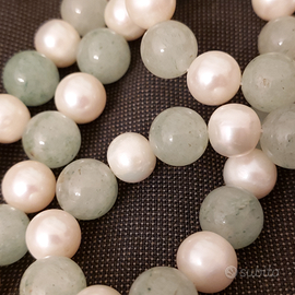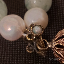 Lunga collana in perle di acqua dolce e giada mela. Le perle misurano mm. 9; quelle in giada mm. 10. Il pendente è montato in ottone con paste vitree. Lunghezza cm. 10,3. Lunghezza della collana cm. 72. Si infila dal collo, priva di fermatura. Nuova. Euro 160. Sempre disponibile per ulteriori foto o informazioni. Pagamento e spedizione esclusivamente tramite tutto Subito.