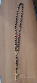 Collana rosario in vetro di murano, con crocifisso dorato, lunghezza 56cm.
