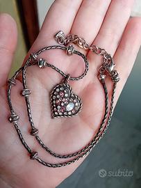 È formata da una catena costituita da elementi a rondella con piccola greca intervallati da rondelle con cristalli rosa e ciondolo a forma di cuore.