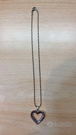 Collana vintage con cuore aperto e strass color argento