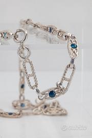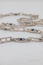 Collana Vintage Lunga Argento 800 (21,7 gr) - L. 60 cm - Maglia Alternata con laccature Azzurre
