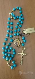 -Collana rosario in turchese e placcata in oro, lunghezza 55cm.