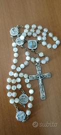-Collana rosario con grani in alabastro e placcata argento, lunghezza 50cm